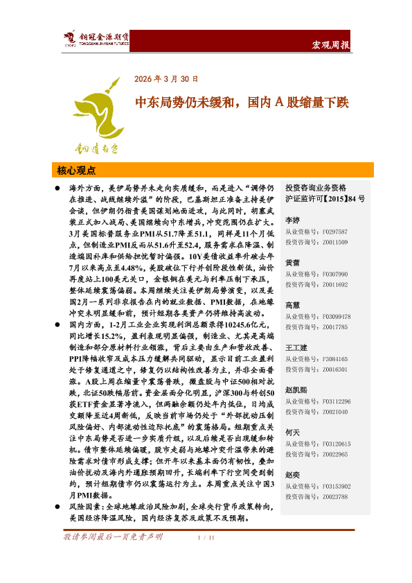 【铜冠金源期货】【202603】中东局势仍未缓和,国内A股缩量下跌-11页