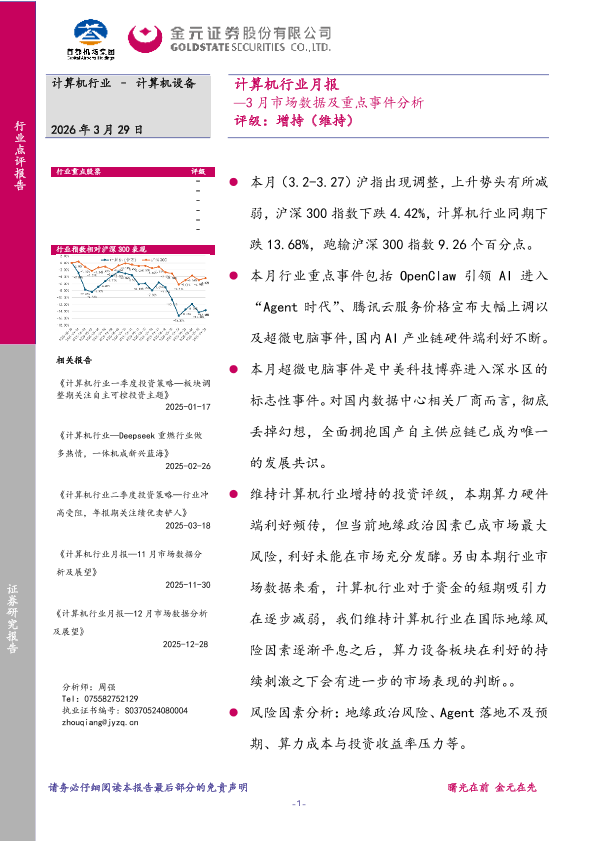 【金元证券】【202603】计算机行业月报:3月市场数据及重点事件分析-32页