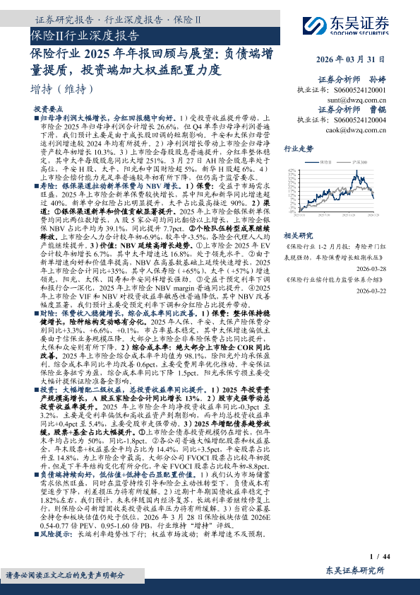 【东吴证券】【202603】保险行业2025年年报回顾与展望:负债端增量提质,投资端加大权益配置力度-44页