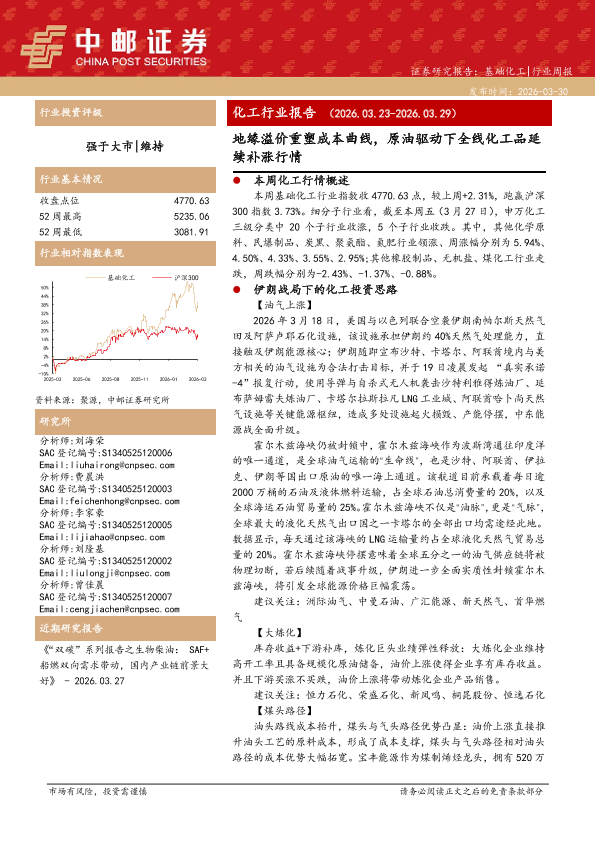 【中邮证券】【202603】基础化工行业周报:地缘溢价重塑成本曲线,原油驱动下全线化工品延续补涨行情-39页