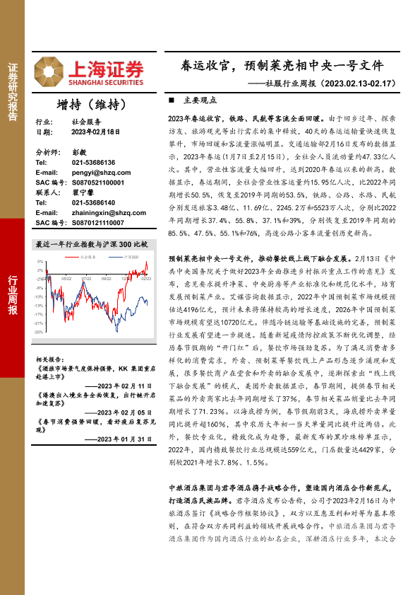 【上海证券】【20230218】社服行业周报:春运收官,预制菜亮相中央一号文件-15页