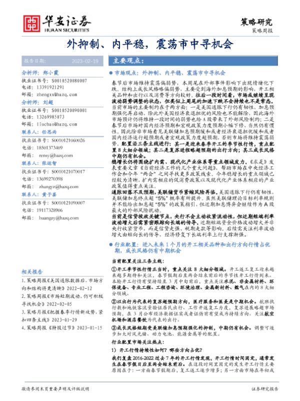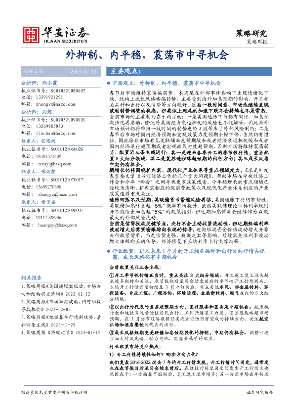【华安证券】【20230219】策略周报:外抑制、内平稳,震荡市中寻机会-18页