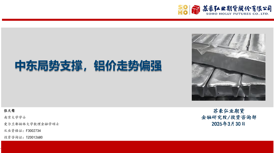 【弘业期货金融研究院&投资咨询部】【202303】中东局势支撑,铝价走势偏强-16页