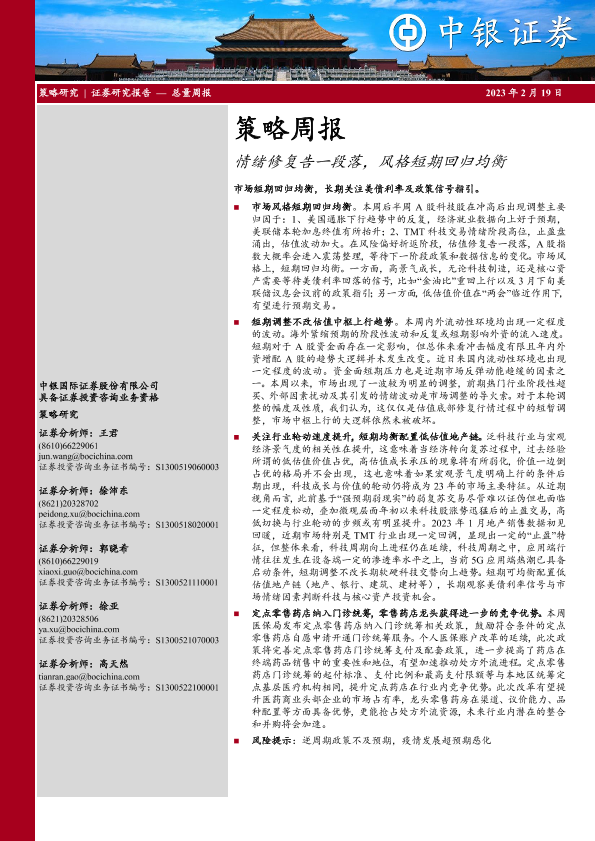 【中银证券】【20230219】策略周报:情绪修复告一段落,风格短期回归均衡-19页