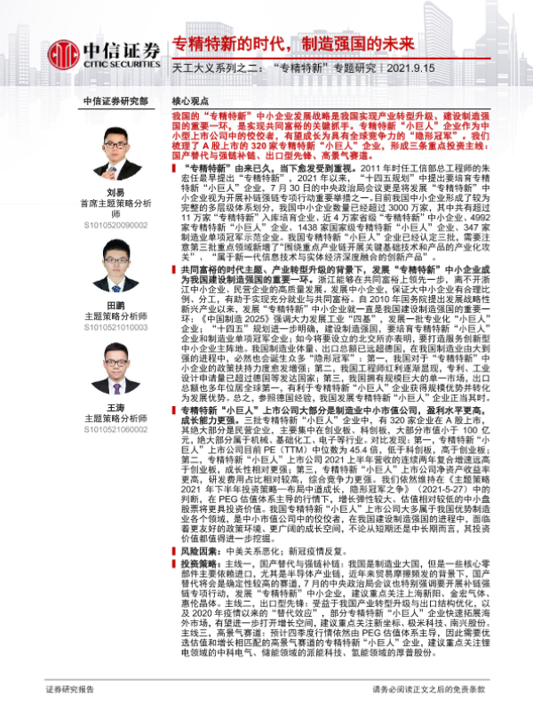 【中信证券】【20210915】天工大义系列之二:“专精特新”专题研究,专精特新的时代,制造强国的未来-25页