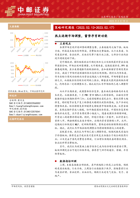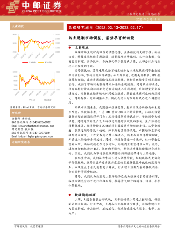 【中邮证券】【20230219】策略研究周报:热点退潮市场调整,蓄势孕育新动能-16页