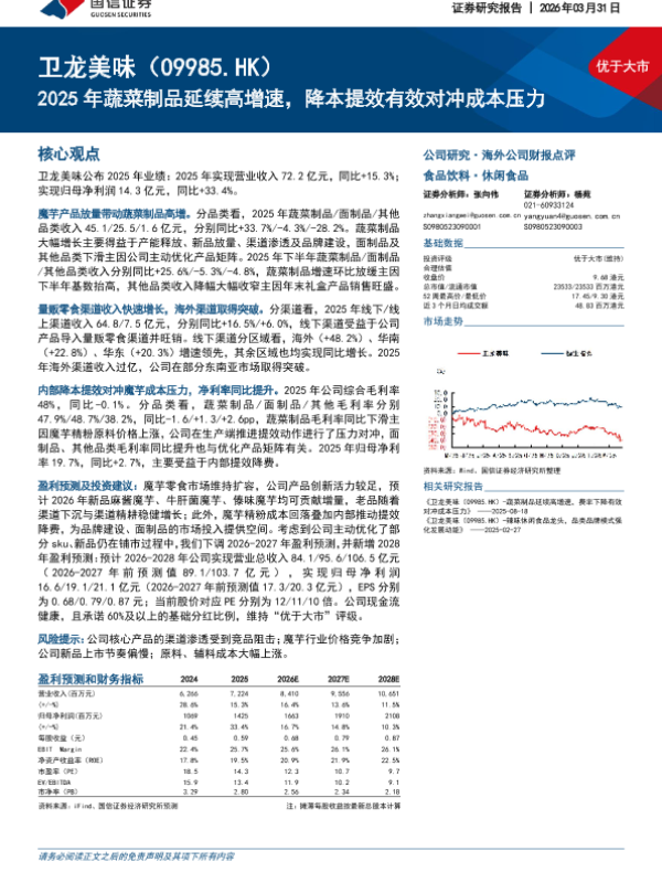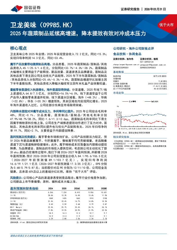【国信证券】【202603】优于大市 卫龙美味(09985.HK)-2025年蔬菜制品延续高增速,降本提效有效对冲成本压力-6页