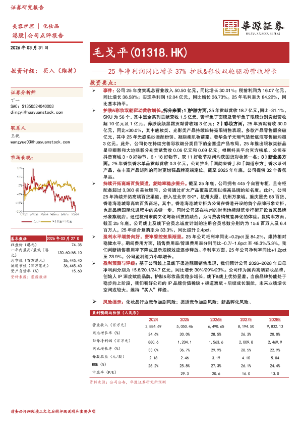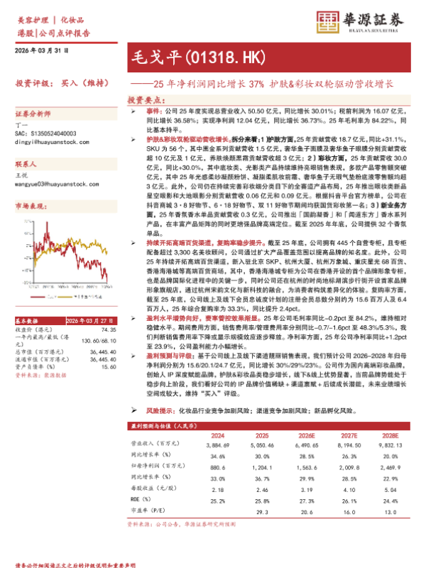 【华源证券】【202603】毛戈平-01318.HK-25年净利润同比增长37_护肤_彩妆双轮驱动营收增长-3页