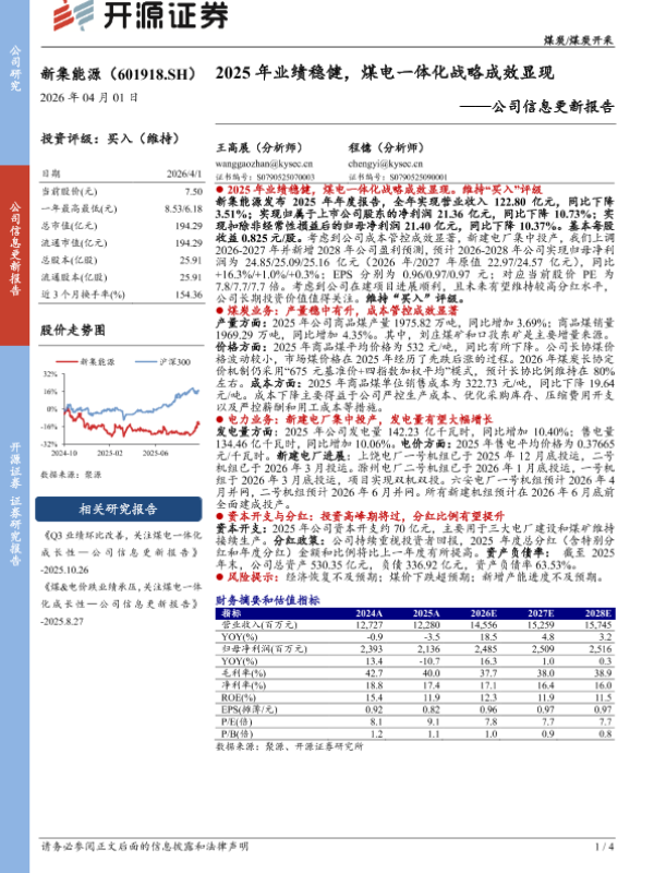 【开源证券】【202604】公司信息更新报告:2025年业绩稳健,煤电一体化战略成效显现-4页