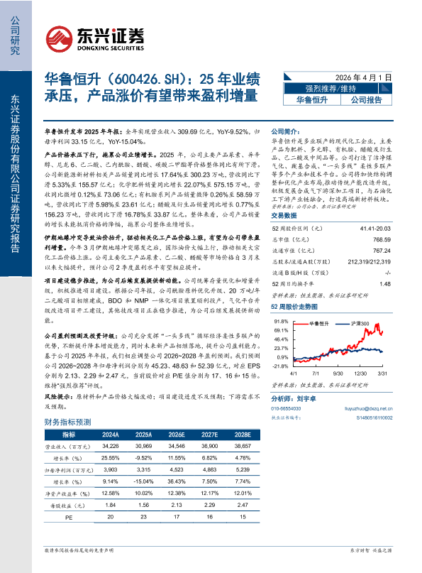 【东兴证券股份有限公司研究所】【2025】华鲁恒升(600426.SH):25年业绩承压,产品涨价有望带来盈利增量-5页