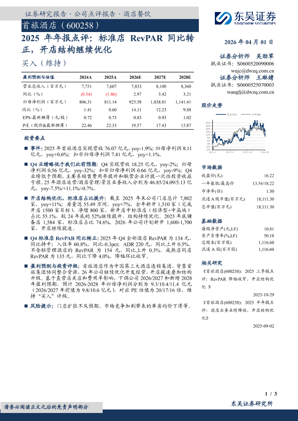 【东吴证券】【202604】2025年年报点评:标准店 RevPAR同比转正,开店结构继续优化-3页