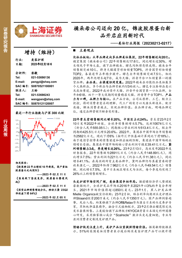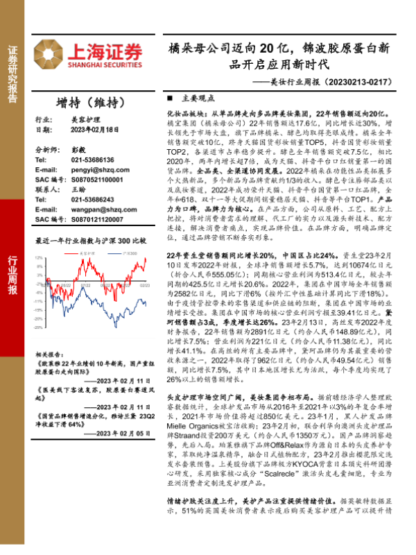 【上海证券】【20230218】美妆行业周报:橘朵母公司迈向20亿,锦波胶原蛋白新品开启应用新时代-23页