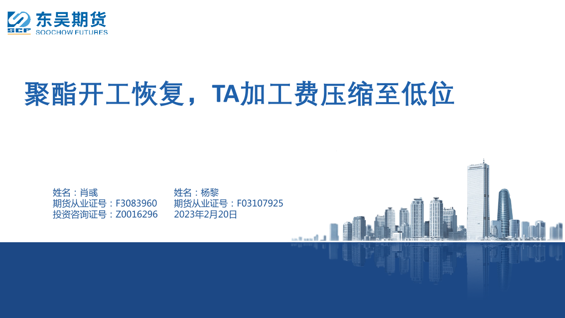 【东吴期货】【20230220】聚酯开工恢复,TA加工费压缩至低位-69页