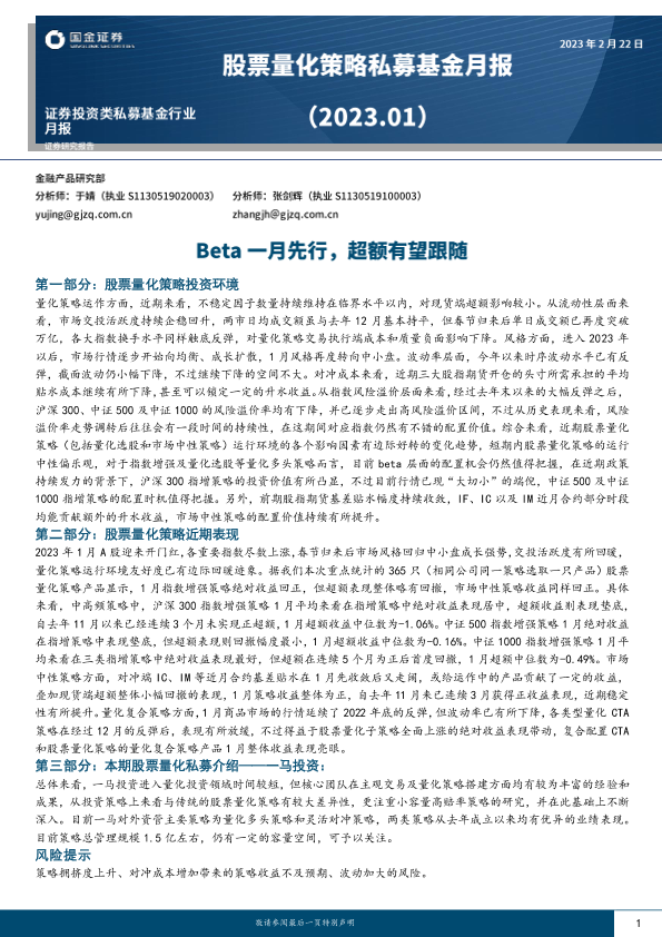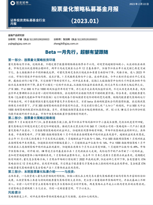 【国金证券】【20230222】股票量化策略私募基金月报:Beta一月先行,超额有望跟随-19页