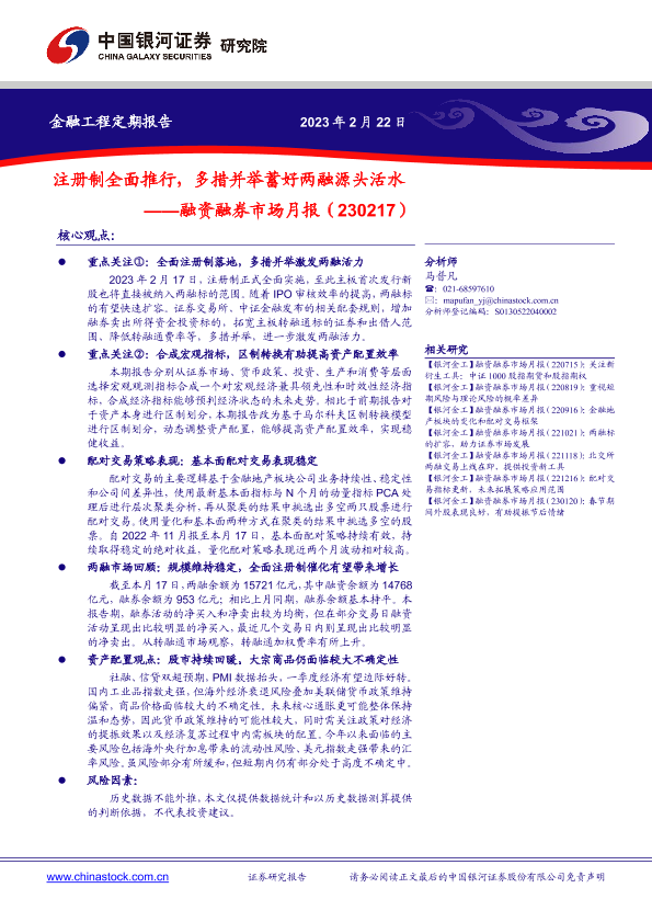 宏观经济 注册制 资产配置 配对交易 融资融券