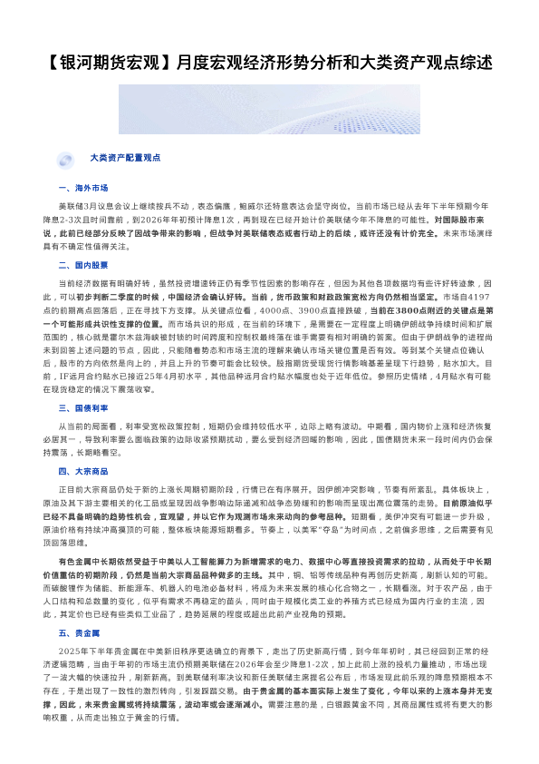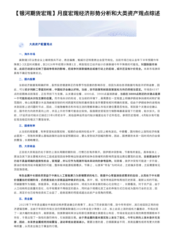 【银河期货有限公司】【202603】月度宏观经济形势分析和大类资产观点综述-2页