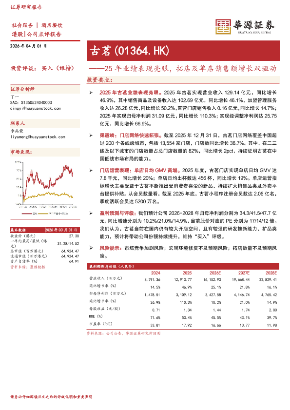 【华源证券】【202604】古茗(01364.HK)——25年业绩表现亮眼,拓店及单店销售额增长双驱动-3页