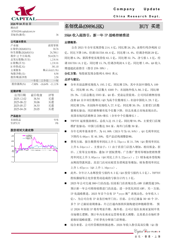 【群益证券 ( 香港 ) 有限公司】【202604】名创优品-09896.HK-25Q4收入超指引_新一年IP战略持续推进-3页