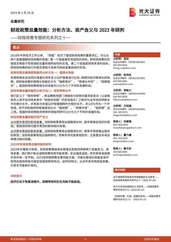【光大证券】【20230220】财政政策总量效能:分析方法、资产含义与2023年研判-26页