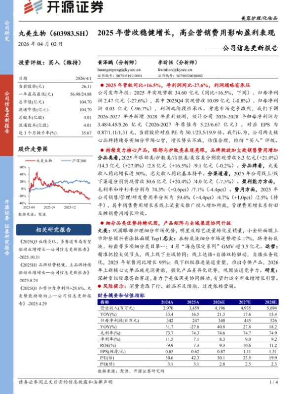 【开源证券】【202604】2025年营收稳健增长,高企营销费用影响盈利表现——公司信息更新报告-4页