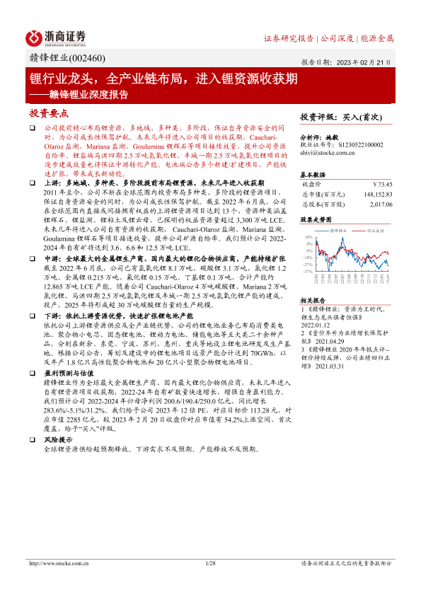 【浙商证券】【20230221】赣锋锂业深度报告:锂行业龙头,全产业链布局,进入锂资源收获期-28页