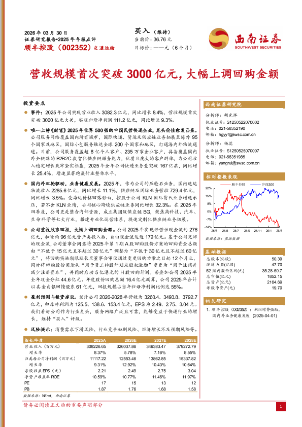 投资评级 快递行业 财务预测 股东回报 业绩分析