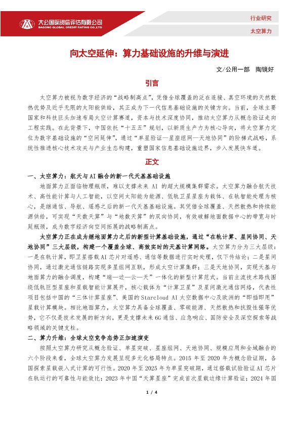 【大公国际】【202408】向太空延伸:算力基础设施的升维与演进-4页