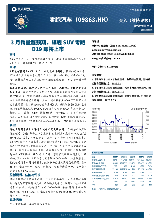 【国金证券】【202604】3月销量超预期,旗舰 SUV零跑 D19即将上市-4页