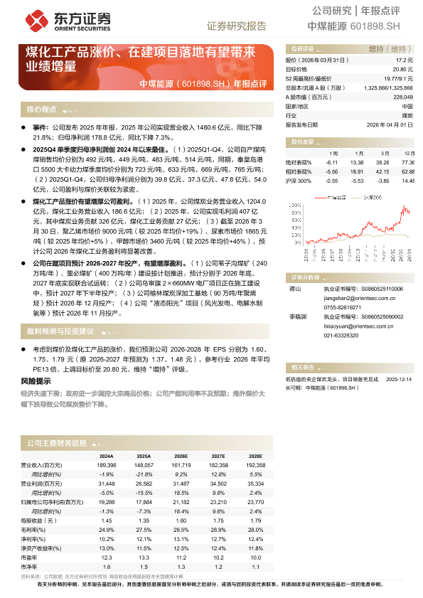 【东方证券】【202604】中煤能源年报点评——煤化工产品涨价、在建项目落地有望带来业绩增量-5页