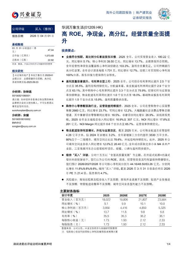 【兴证国际证券有限公司】【202604】华润万象生活(01209.HK) 高ROE,净现金,高分红,经营质量全面提升-4页