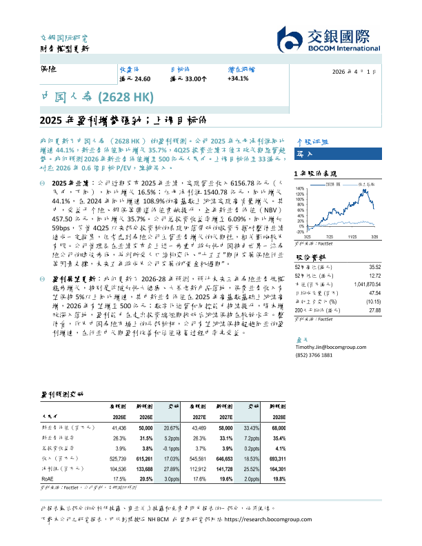 【交银国际】【202604】中国人寿(2628 HK) 2025年盈利增势强劲;上调目标价-5页