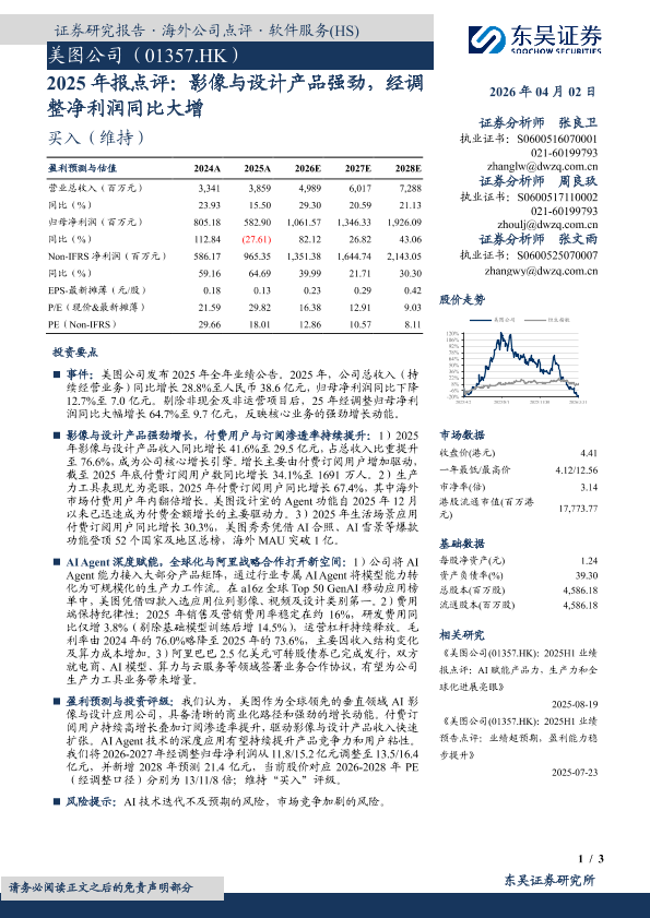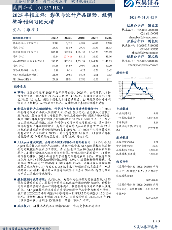 【东吴证券】【202604】美图公司(01357.HK)2025年报点评:影像与设计产品强劲,经调整净利润同比大增-3页