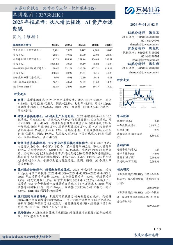 软件服务 AI资产变现 海外公司点评 阜博集团 盈利预测