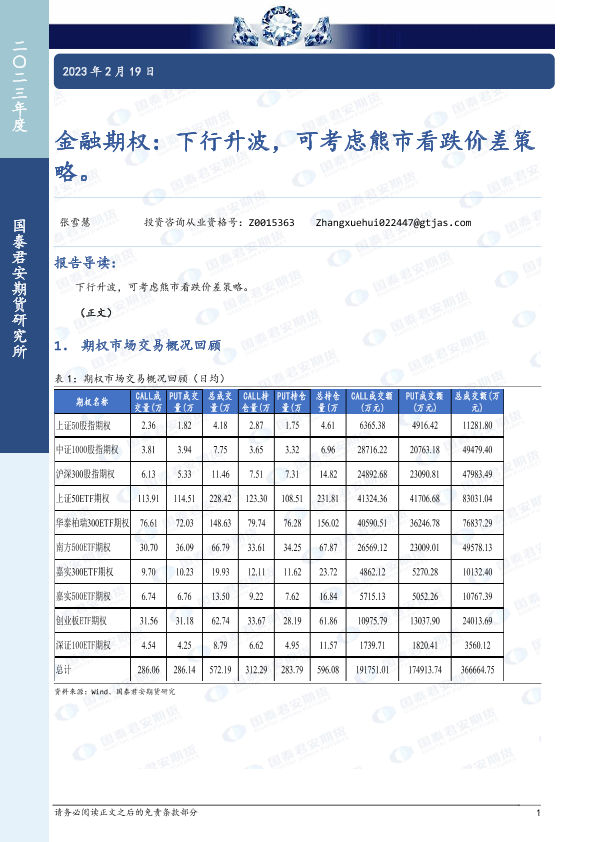 【国泰君安期货】【20230219】金融期权:下行升波,可考虑熊市看跌价差策略-15页