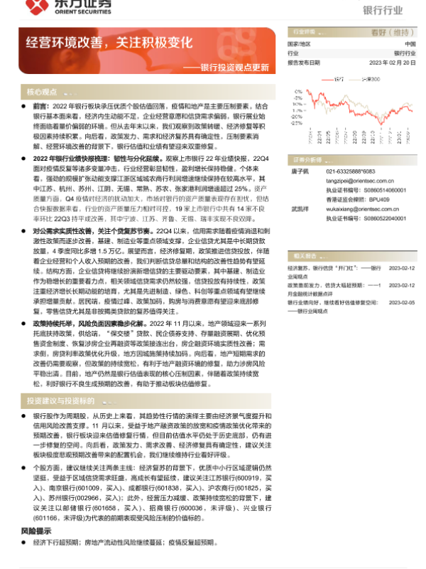 【东方证券】【20230220】银行业投资观点更新:经营环境改善,关注积极变化-22页