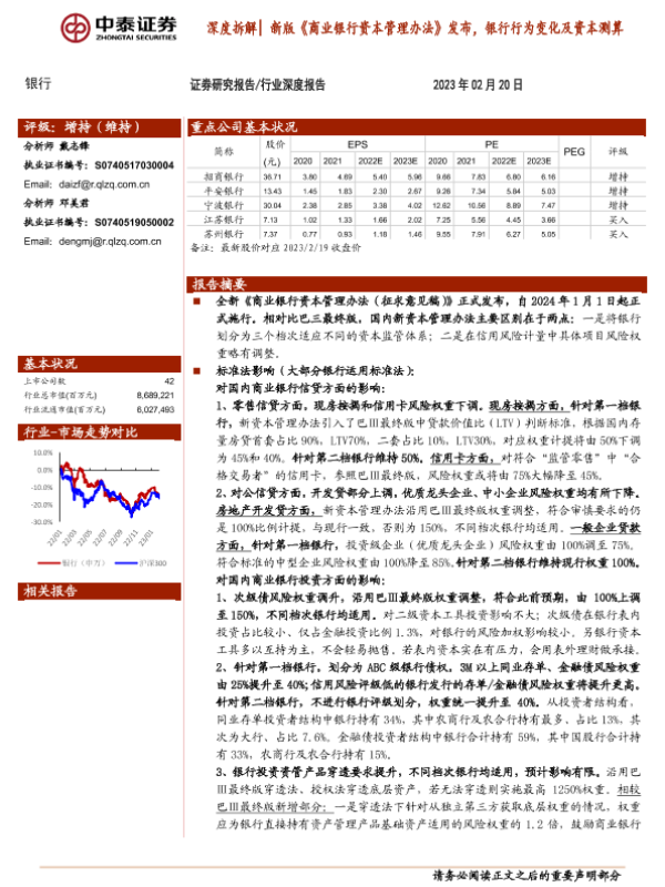 【中泰证券】【20230220】银行业深度拆解:新版《商业银行资本管理办法》发布,银行行为变化及资本测算-33页