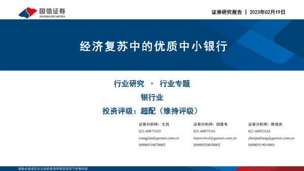 【国信证券】【20230219】经济复苏中的优质中小银行-27页