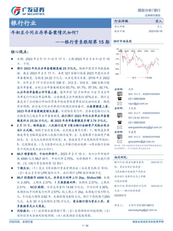 【广发证券】【20230219】银行行业跟踪分析:银行资负跟踪第15期-年初至今同业存单备案情况如何?-34页