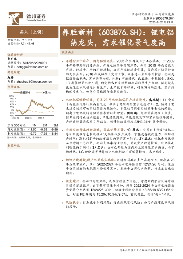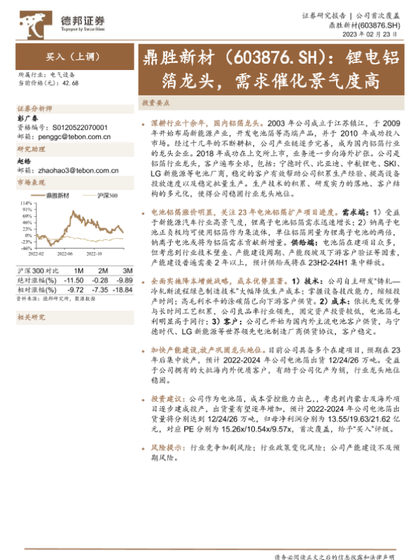 【德邦证券】【20230223】锂电铝箔龙头,需求催化景气度高-19页