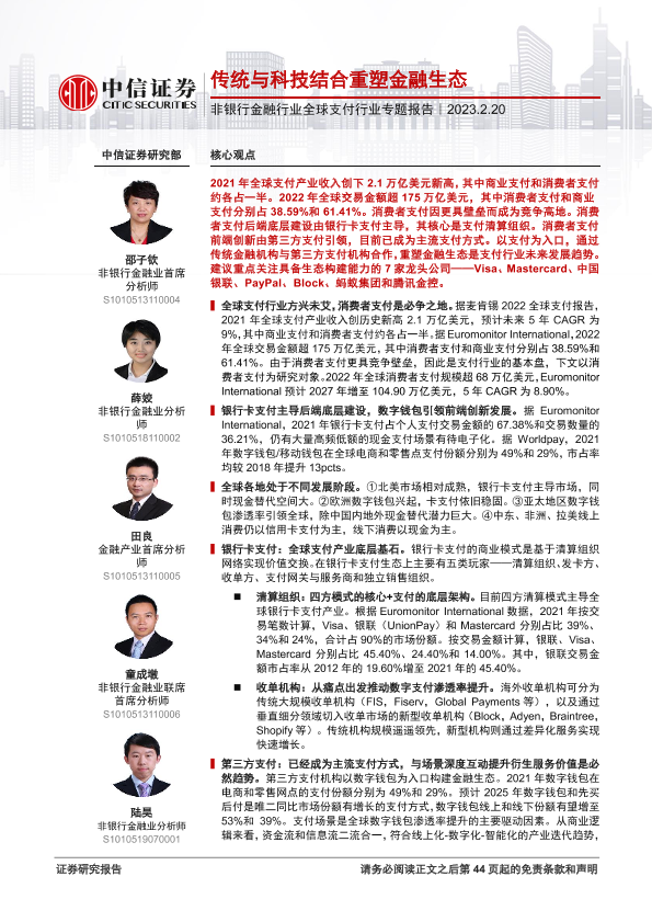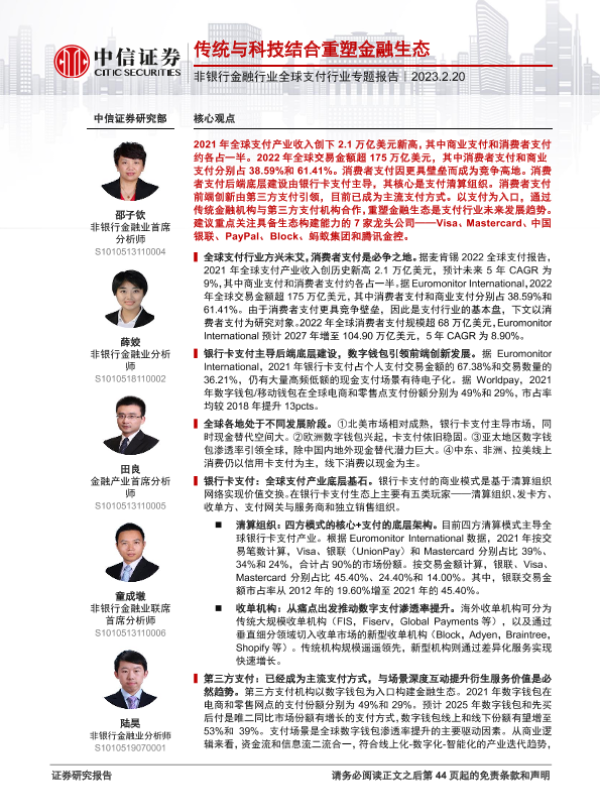【中信证券】【20230220】非银行金融行业全球支付行业专题报告:传统与科技结合重塑金融生态-45页