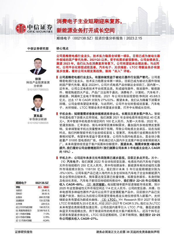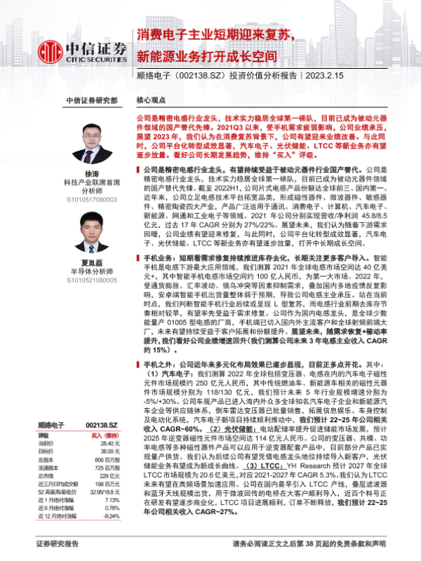 【中信证券】【20230215】顺络电子(002138)投资价值分析报告:消费电子主业短期迎来复苏,新能源业务打开成长空间-39页