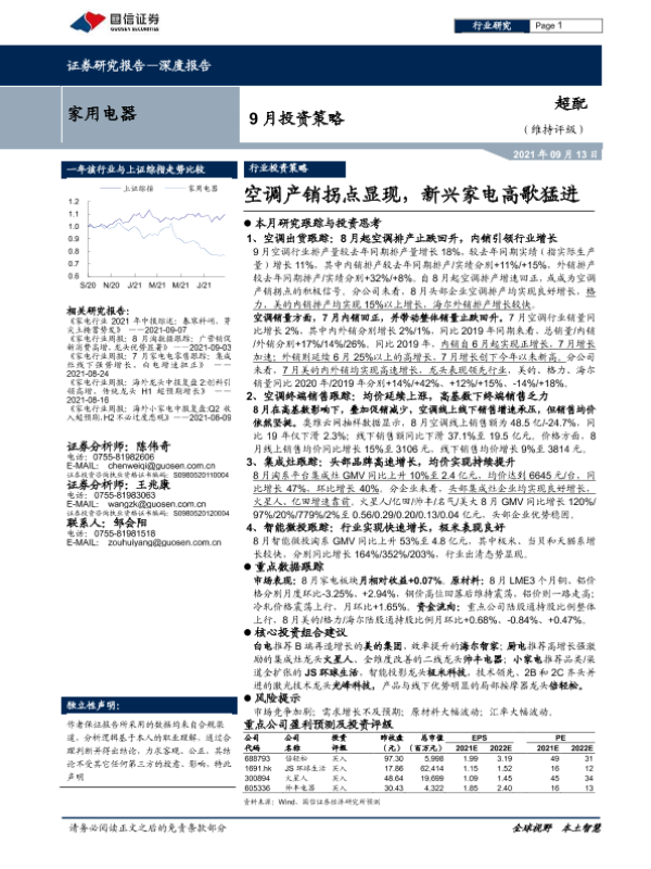 【国信证券】【20210913】家用电器行业9月投资策略:空调产销拐点显现,新兴家电高歌猛进-15页