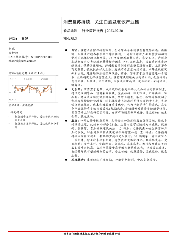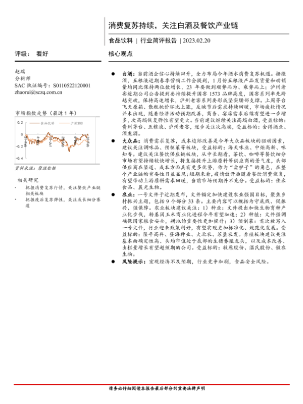 农业 消费复苏 白酒 食品饮料 餐饮产业链