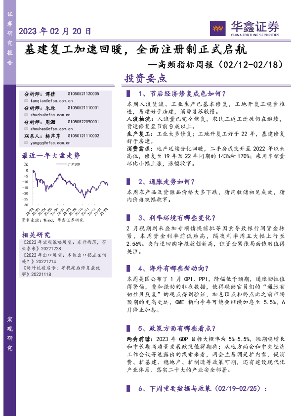【华鑫证券】【20230220】高频指标周报:基建复工加速回暖,全面注册制正式启航-26页