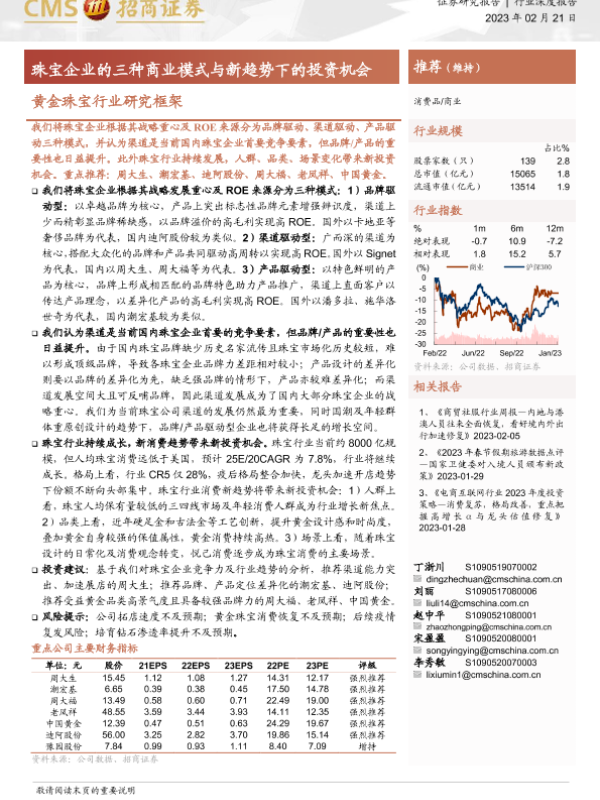 【海通证券】【20230221】黄金珠宝行业研究框架:珠宝企业的三种商业模式与新趋势下的投资机会-23页