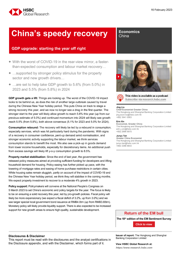 【The Hongkong and Shanghai Banking Corporation Limited】【20230216】HSBC-China’s speedy recovery-GDP upgrade starting the year off-11页