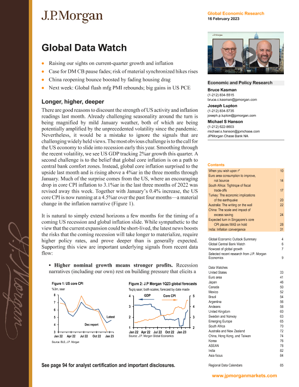 【J.P. Morgan】【20230216】JPMorgan Econ FI-Global Data Watch Longer, higher, deeper-96页