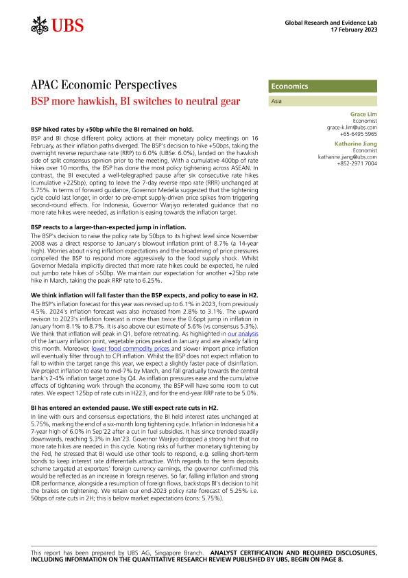 【UBS】【20230217】APAC Economic Perspectives BSP more hawkish, BI switches to neutral gear-11页