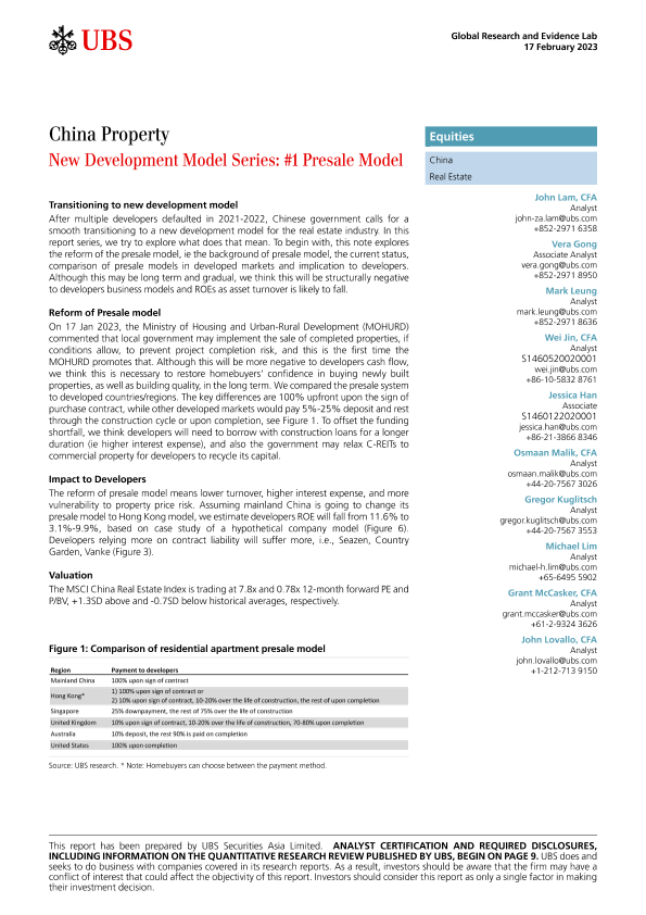 【UBS Securities Asia Limited】【20230217】中国房地产:新发展模式系列#1 预售模式-16页