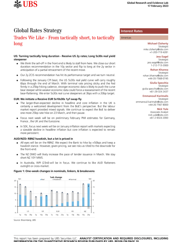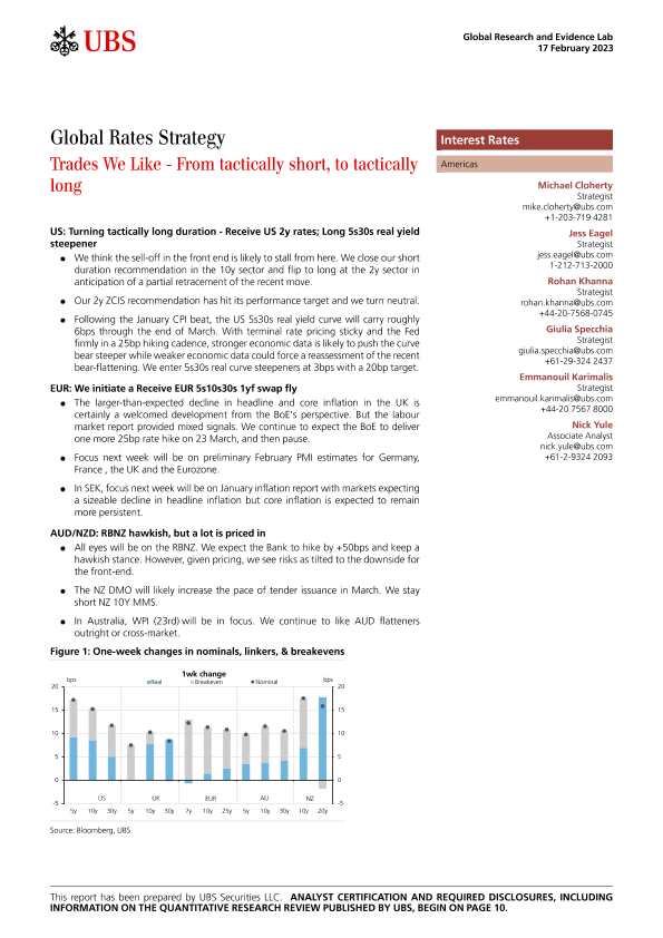 【UBS Securities LLC】【20230217】Global Rates Strategy _Trades We Like - From tactically short, to tactically long-15页
